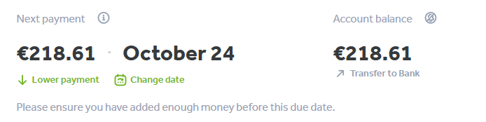 But before you make a withdrawal order, please scroll to your dashboard and ensure that there will be enough money on your account for your next repayment, e.g.: