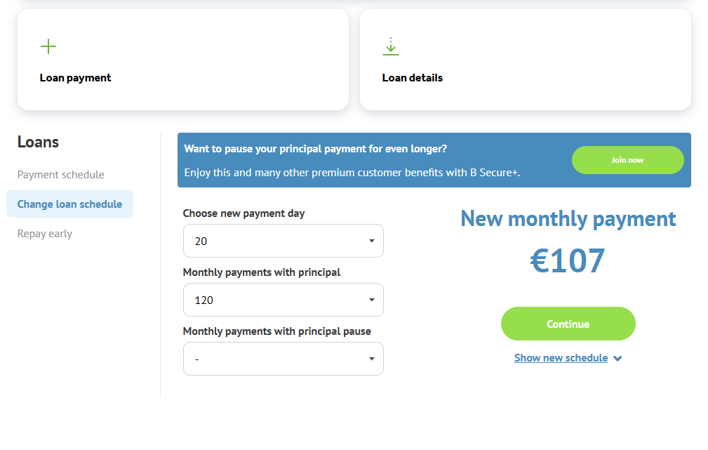 If your current payment plan doesn’t fit well with your payday, you can easily change it using B Secure.